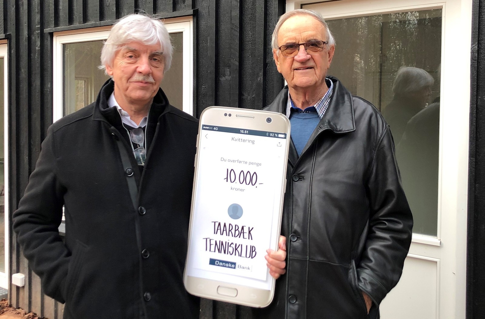 Mandag i sidste uge mødte filialdirektør Henrik Hagstrøm op i Taarbæk Tennis Klub med 10.000 kroner fra Den Danske Bank i Lyngby Fond til hjælp til indkøb af inventar i klubbens nyopførte, lille klubhus ved de tre baner, der ligger isoleret i skoven mod Strandvejen.