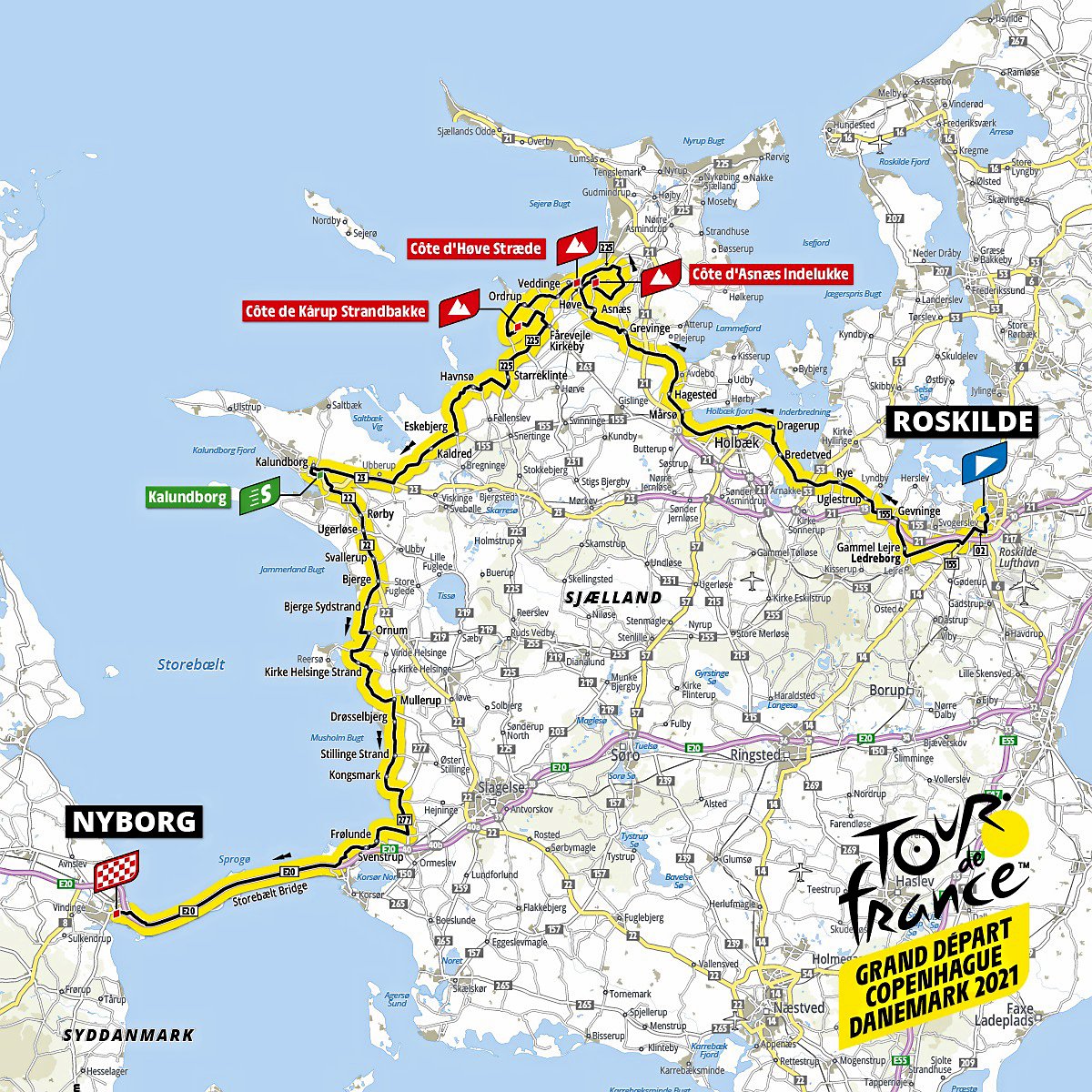 - Vi har fået sammensat en fantastisk rute fra Roskilde til Nyborg, der både byder på sportslige udfordringer til rytterne og smuk, dansk natur og kulturarv til seerne verden over. Og med mit store sportshjerte så glæder det mig, at vi har skabt en rute, hvor den gule trøje meget vel kan komme til at skifte hænder igen allerede på anden etape, siger borgmester i Roskilde Kommune, Tomas Breddam.