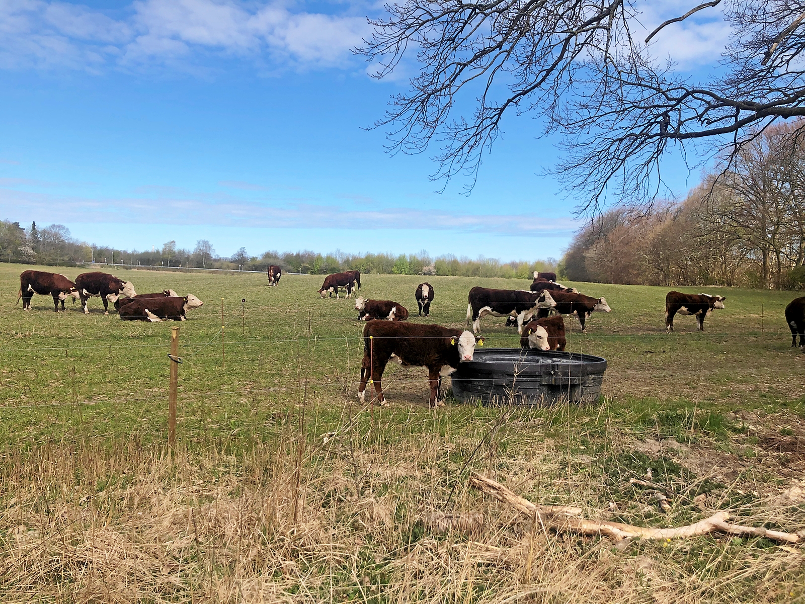 For Danholt driver et økologisk landbrug, hvor hans kødkvæg går og græsser på markerne ved Krogerup. Herfra er der to kilometer i fugleflugtslinje til slagteren på Ida Tesdorpfsvej i Humlebæk, hvor man fremover kan købe kødet fra Danholts køer under navnet Krogerupholm.