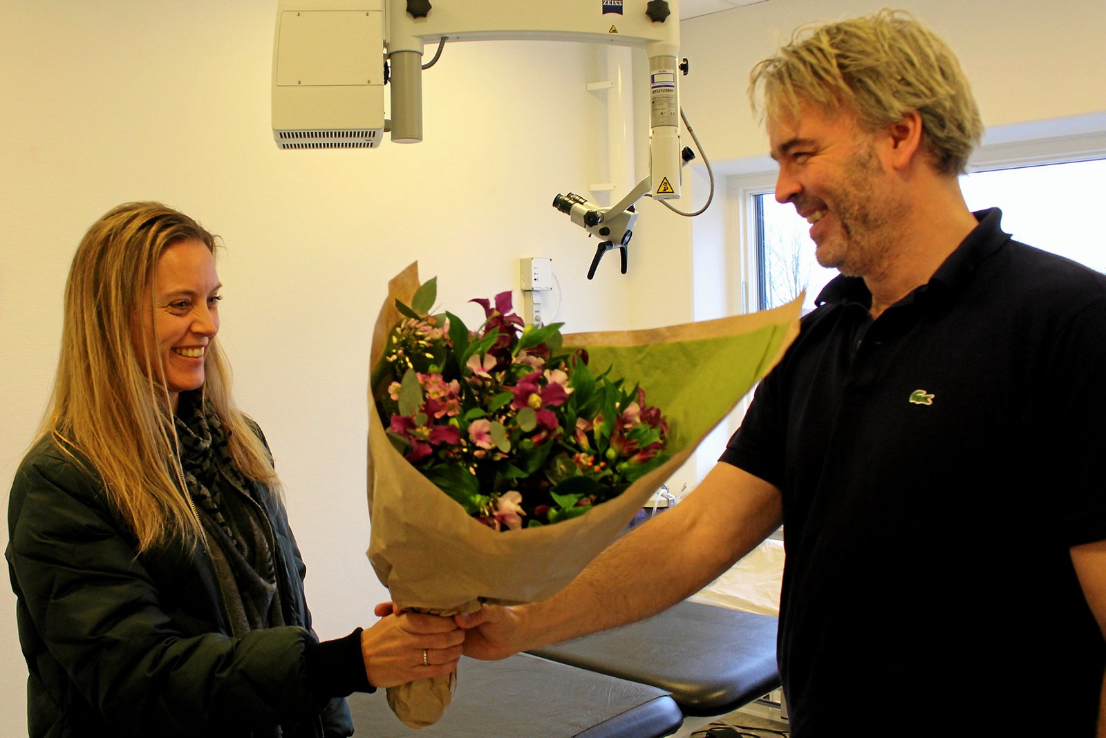 Månedens Blomst fra Da Capo & Co. gik denne gang til øre-, næse-, halslæge Peter Holmboe og hans personale. De var indstillet af en af klinikkens klienter, Poul Erik Pedersen.