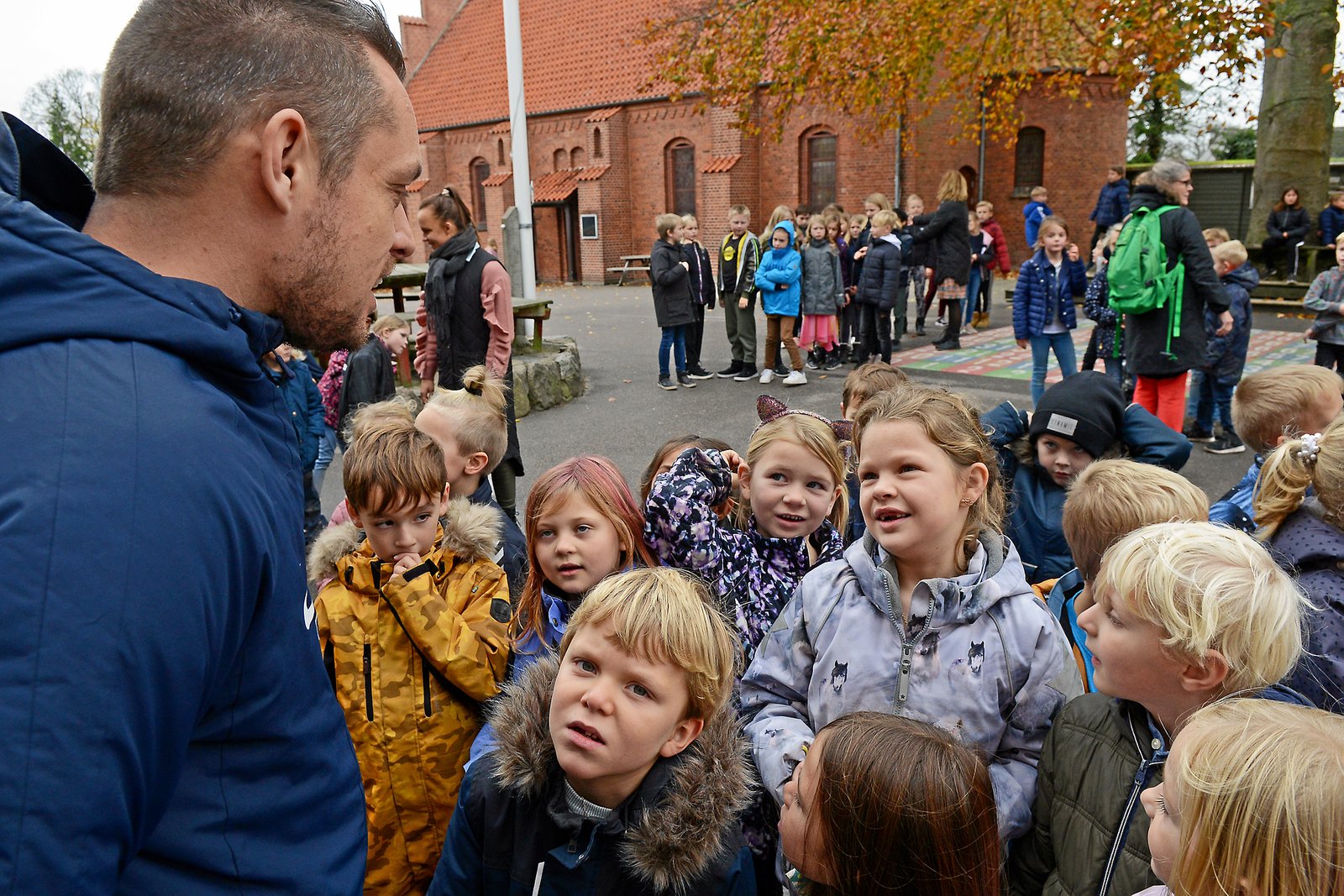 Thomas Thor var sidst på besøg, da skolen holdt emne- uge. Han løb selv med børnene, og fortalte om det fodboldprojekt, han selv står bag. Nu er han tilbage i skolegården, hvor alle børn er samlet. De står pænt og venter på, at Thomas Thor vil afsløre, hvor mange penge børnene fik samlet ind. Det skete ved selv at finde en sponsor til hver kilometer der blev løbet.