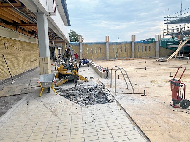 - Vi er nu færdige med at rive ned og med at banke minipæle i til forstærkning af de bærende søjler.