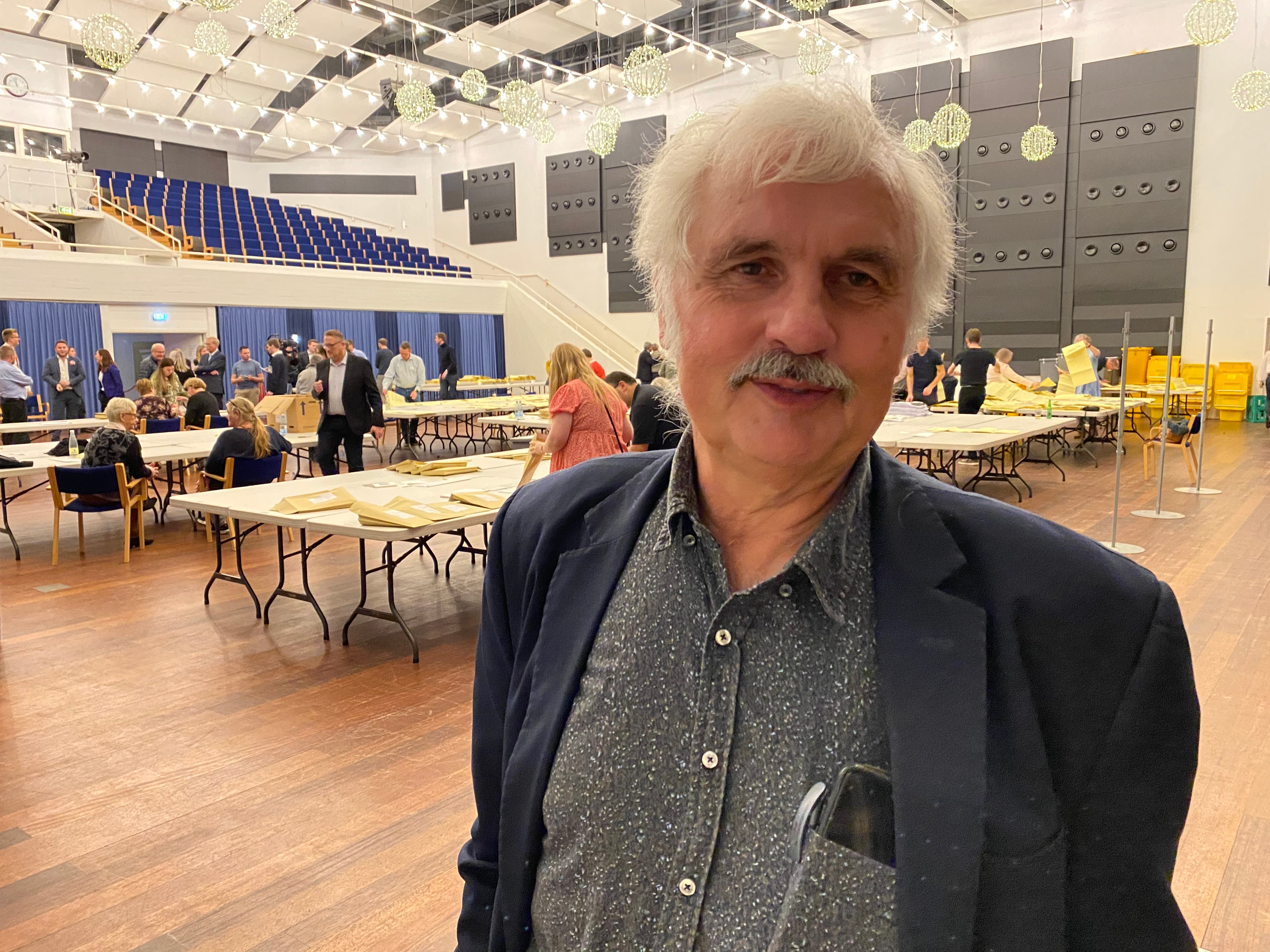 Kort forinden havde han båret stemmesedlerne fra Kværkeby ind i Ringsted Kongrescenter, hvor fintællingen finder sted.