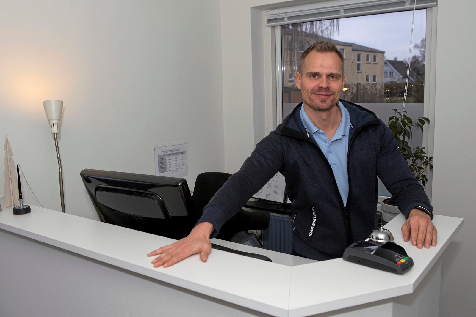 Ved Jyderup Fysioterapis reception, fredag den 4. januar, vil man også kunne se at receptionen er blevet mere brugervenlig - og at personalerumemt er rykket ovenpå - og nu ligger i forbindelse med den nye træningssal, hvor der er opsat otte maskiner.