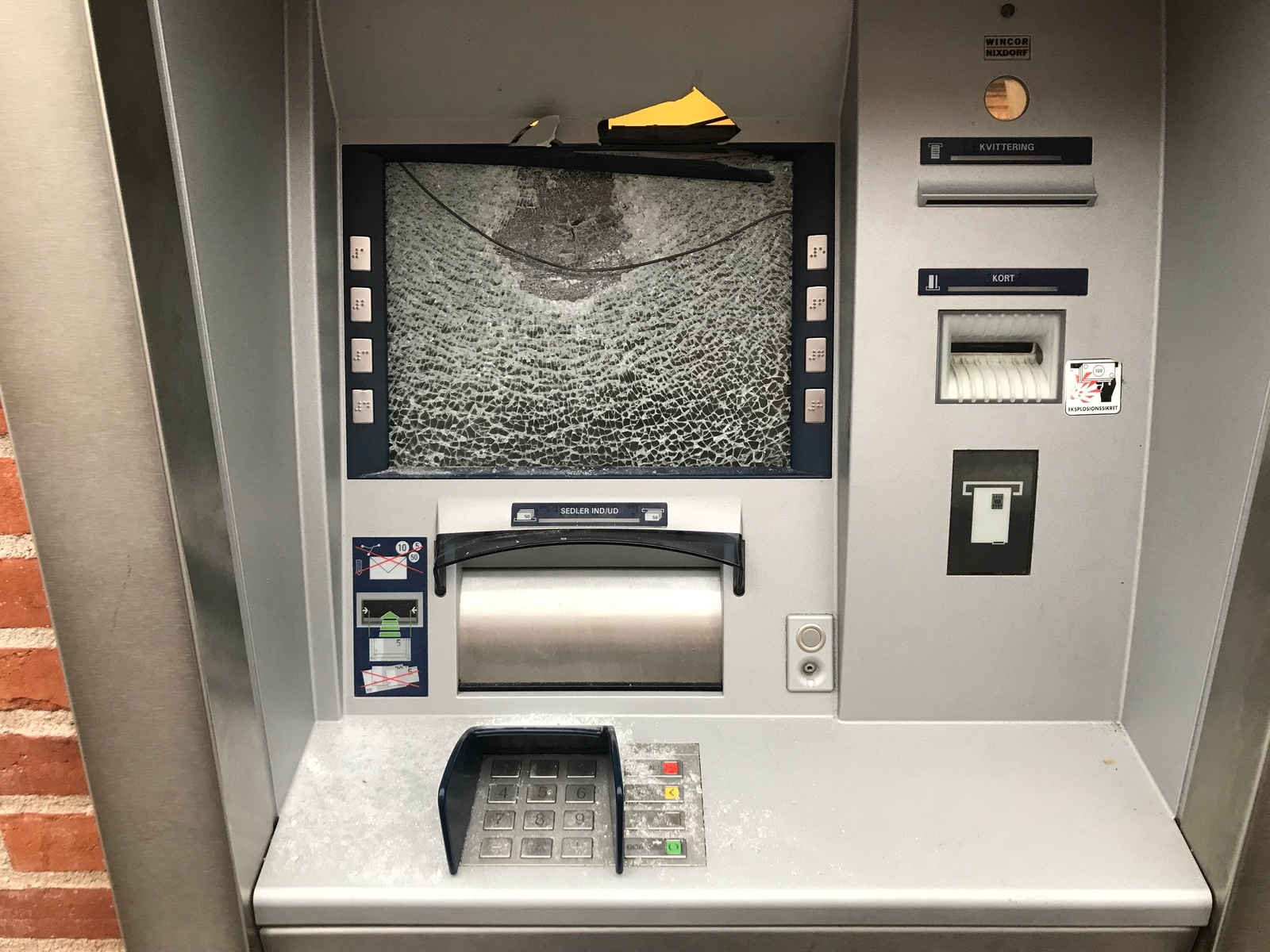 Medarbejderne i Sydbank på Schweizerpladsen i Slagelse opdagede mandag morgen, at den udendørs hæveautomat var blevet smadret tidligt mandag morgen, og at det også var gået ud over en dørtelefon og en indgangsdør.