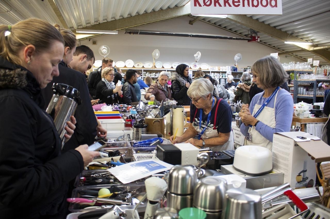 Der er cirka 200 frivillige, som får Spejdernes Genbrug til at løbe rundt, og som både sorterer de mange varer i løbet af ugen og står bag disken i de forskellige afdelinger.