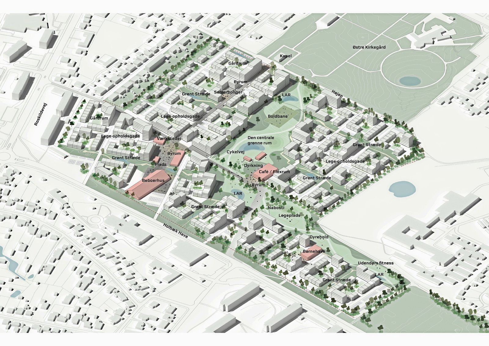 Et projekt fra FB Gruppen A/S, København, er af Holbæk Kommunalbestyrelse valgt som det bedste bud på en udvikling af det gamle idrætsområde ved Holbæk Have i Holbæk.