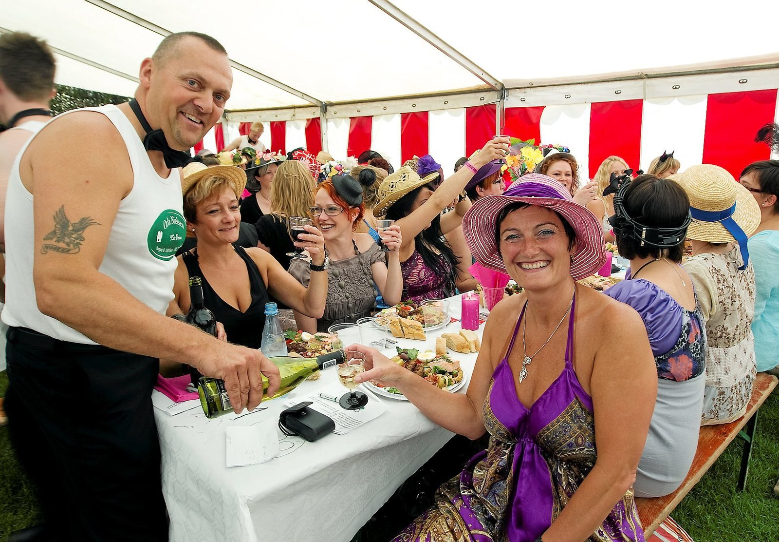 - Der vil til festen være musik fra Johnny Deluxe & diskotek STARZ, som altid kan sætte en fest i gang. Vores dejlige mandlige tjenere sørger for, at kvinderne ikke mangler noget - og tjenerne er altid friske på fest og sjov. Der er mad og fri bar (Øl, vin & vand) under hele frokosten, og igen i år har vi sørget for en særlig »fræk overraskelse« plus et nyt tema, som altid er med til at skrue op for varmen i teltet. Sidst, men ikke mindst, er der konkurrencer og kåring af »Årets Hat« - hvor Cut House sponserer en »make-over« til den heldige vinder.