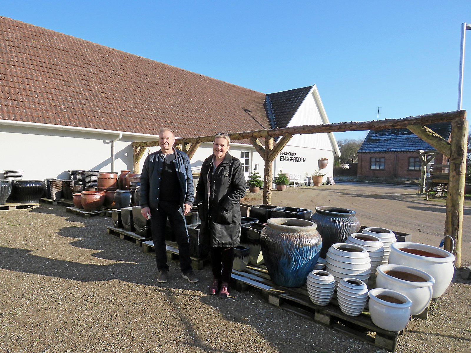Farmshop Enggaarden er klar til en ny sæson med salg af krukker og boliginteriør. Parret bag forretningen, Helle Thorup og Bjarne Hjort Jensen, får produceret de populære krukker i Vietnam og i Grækenland og er netop vendt hjem fra en tur til producenterne ude i den store verden: