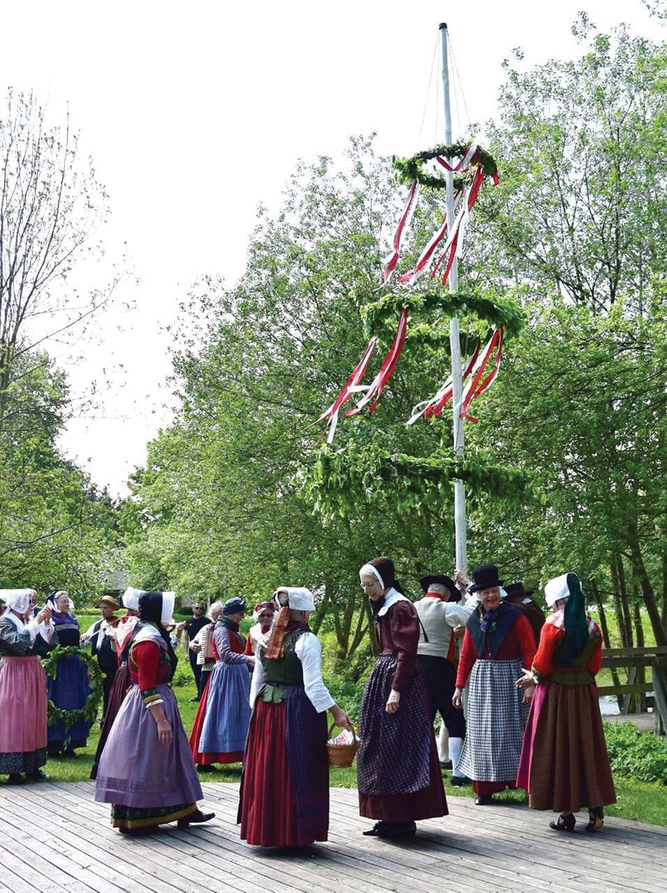 Fra kokken 13 underholder Ryttergårdens Spillemænd med munter spillemandsmusik og klokken 14 bæres majstangen under fuld musik fra græsplænen ved smedjen til dansepladsen, hvor den bliver rejst.