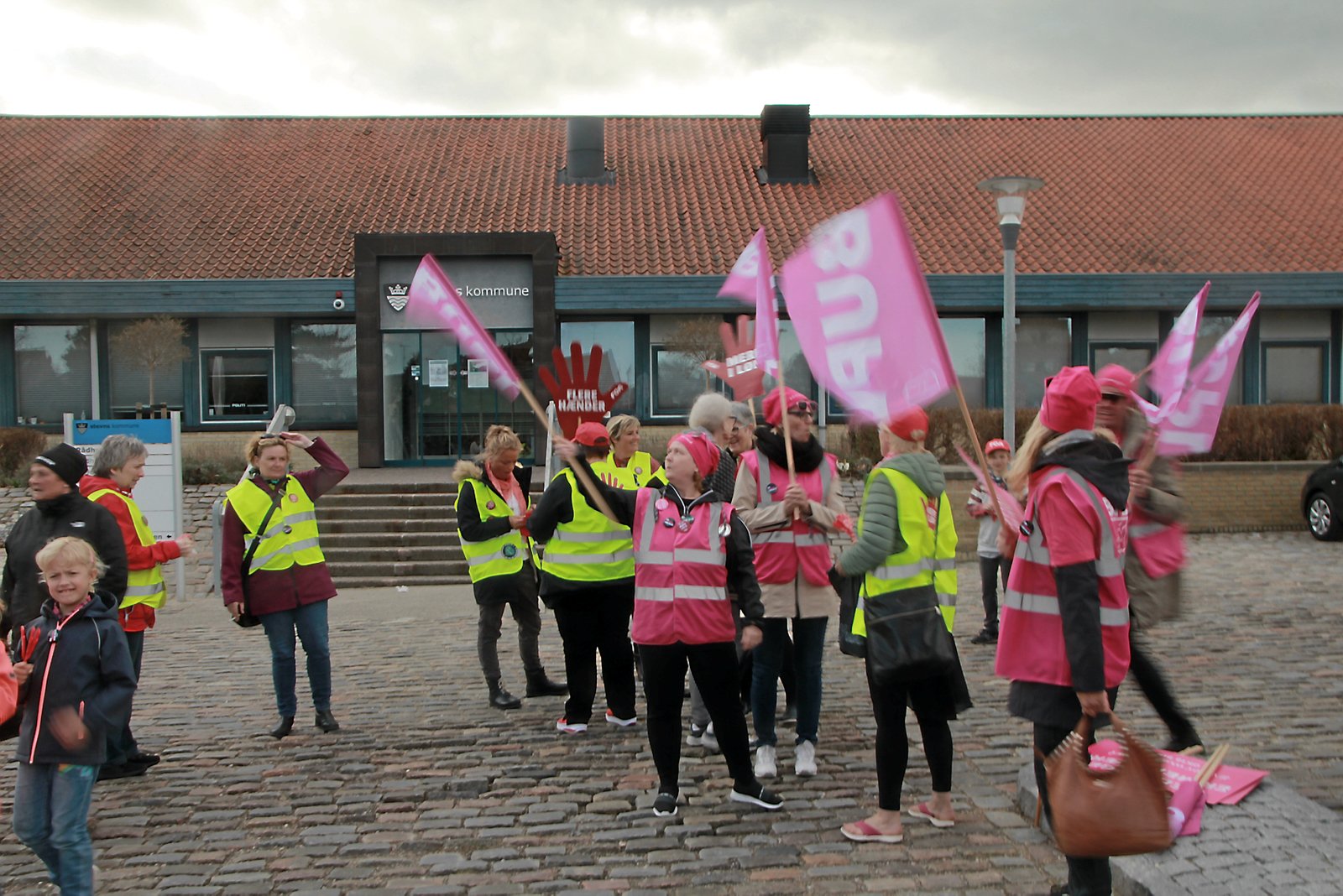 Fløjter, flag, skilte, bannere og et par sange, hvor omkvædet vedrørende »løn, løn, mere løn« var dominerende. Det var ingredienserne, da flere fagforbund og deres medlemmer havde sat hinanden stævne foran Rådhuset i Stevns Kommune for at få de kommunale politikere i tale - lige inden de skulle til det månedlige møde i kommunalbestyrelsen.
