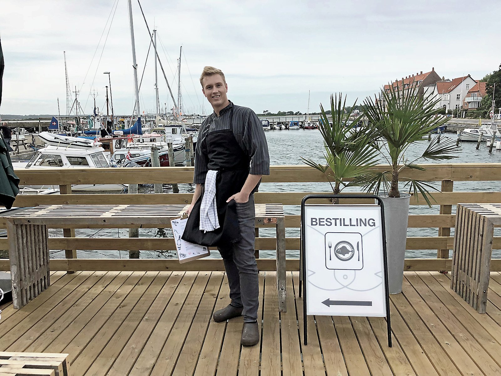 - Fra starten havde vi 300 spisegæster om dagen, cirka ligeligt fordelt mellem frokost og aftenforretningen. Nu er der flere om aftenen, end der er til frokost. Take away-forretningen går også godt, siger Asger Øgelund, der samarbejder med andre lokale forretningsdrivende og sælger varer fra Kalundborg Vinhus og Slagter Jacob. Blomsterdekorationerne i fiskecafeen er fra naboen, Blomsterværkstedet.