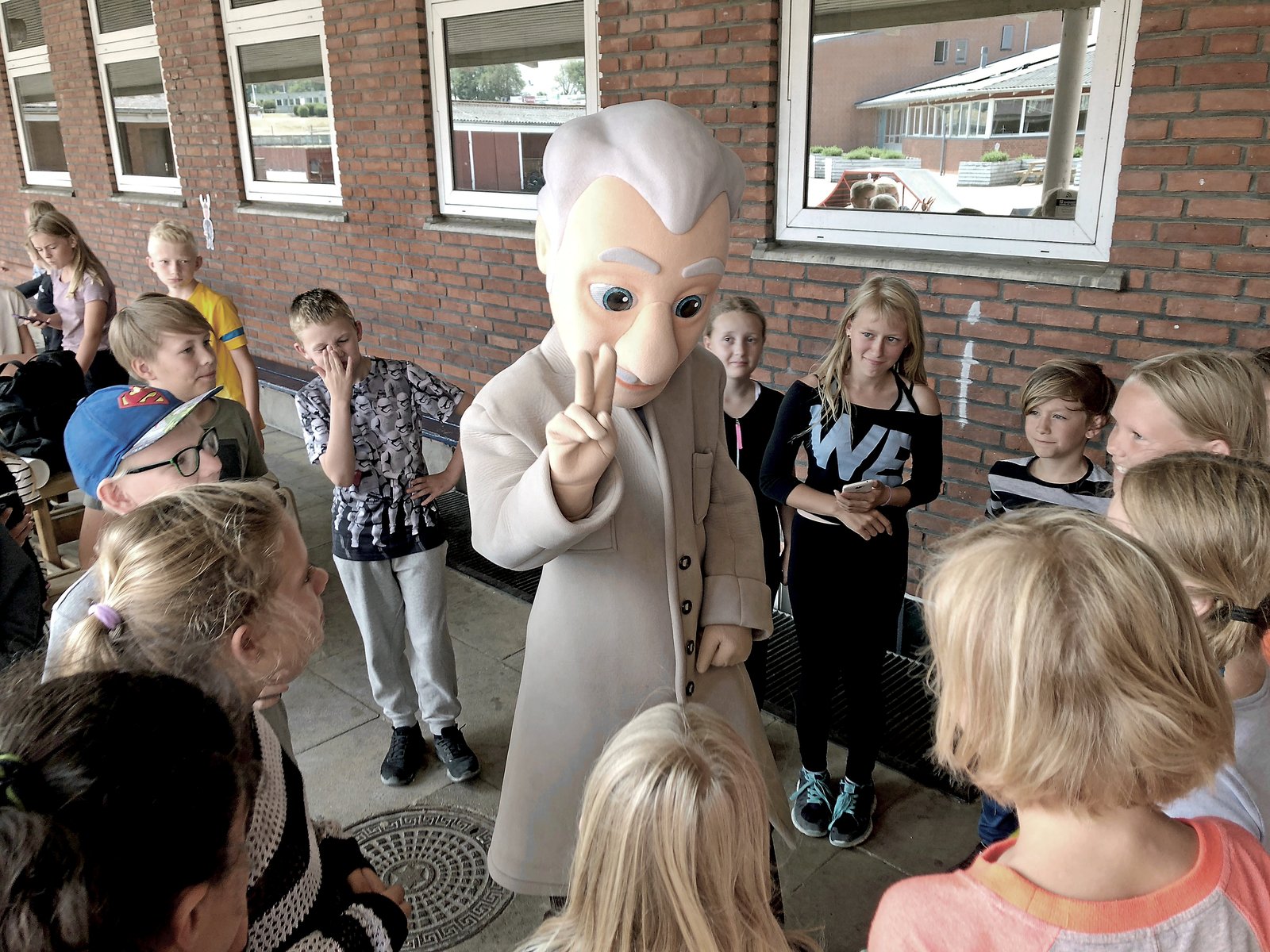 4. klasse fik nemlig fornøjelsen af matematikprofessoren Fessor, som de kender fra onlineundervisningsportalen MatematikFessor. Den bruger eleverne både i undervisningen og derhjemme.