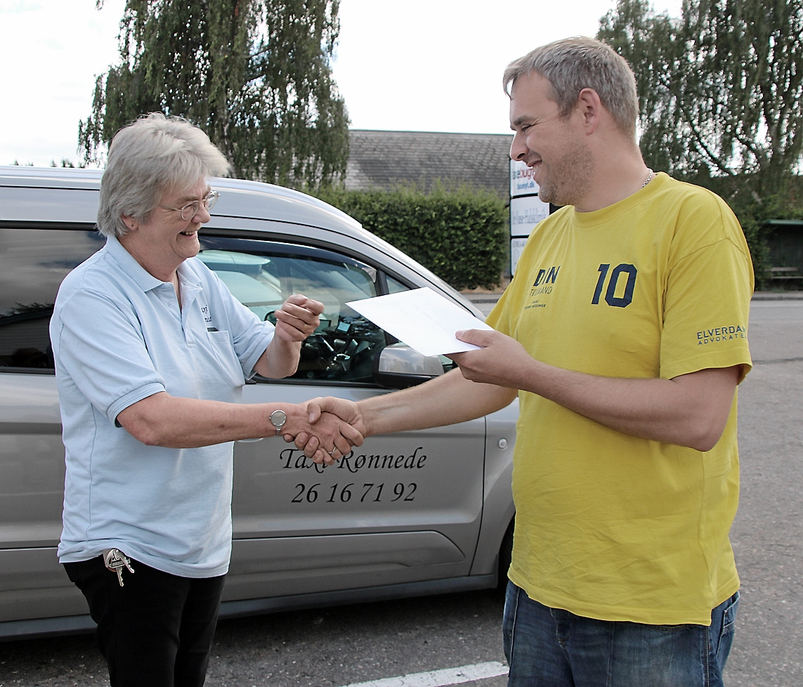 De penge overrakte hun til Peter i mandags - og han var selvsagt ovenud glad, for de 4.000 kr. dækker lige nøjagtig den rate af de i alt 12.000 kr. som skal betales her inden længe.