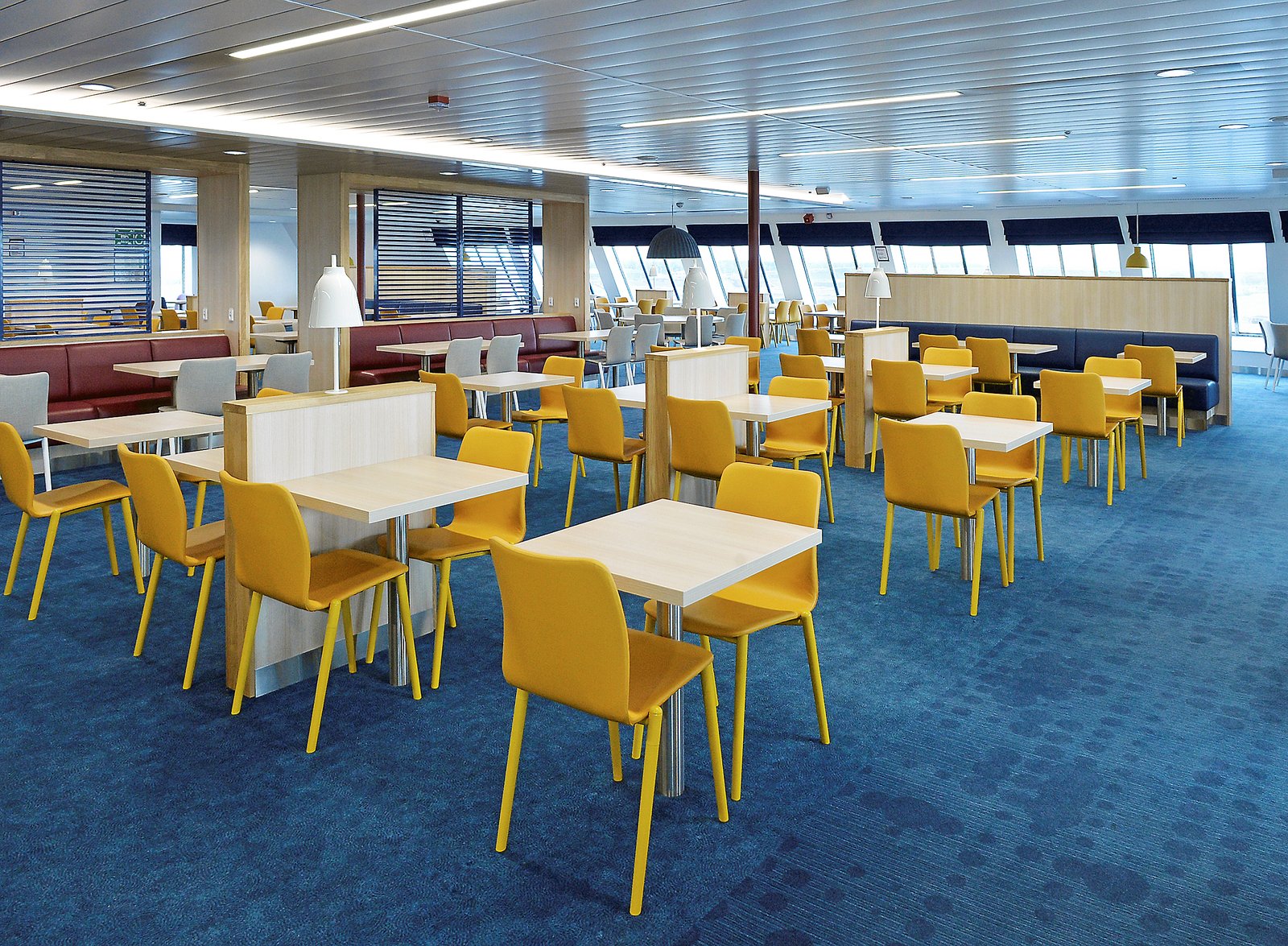 Bag ved cafeteriaet ligger en seatinglounge med 200 flysæder, som kan lænes tilbage. En praktisk indretning, når færgen afgår fra Køge klokken 00.30 om natten og er fremme i Rønne næste morgen.