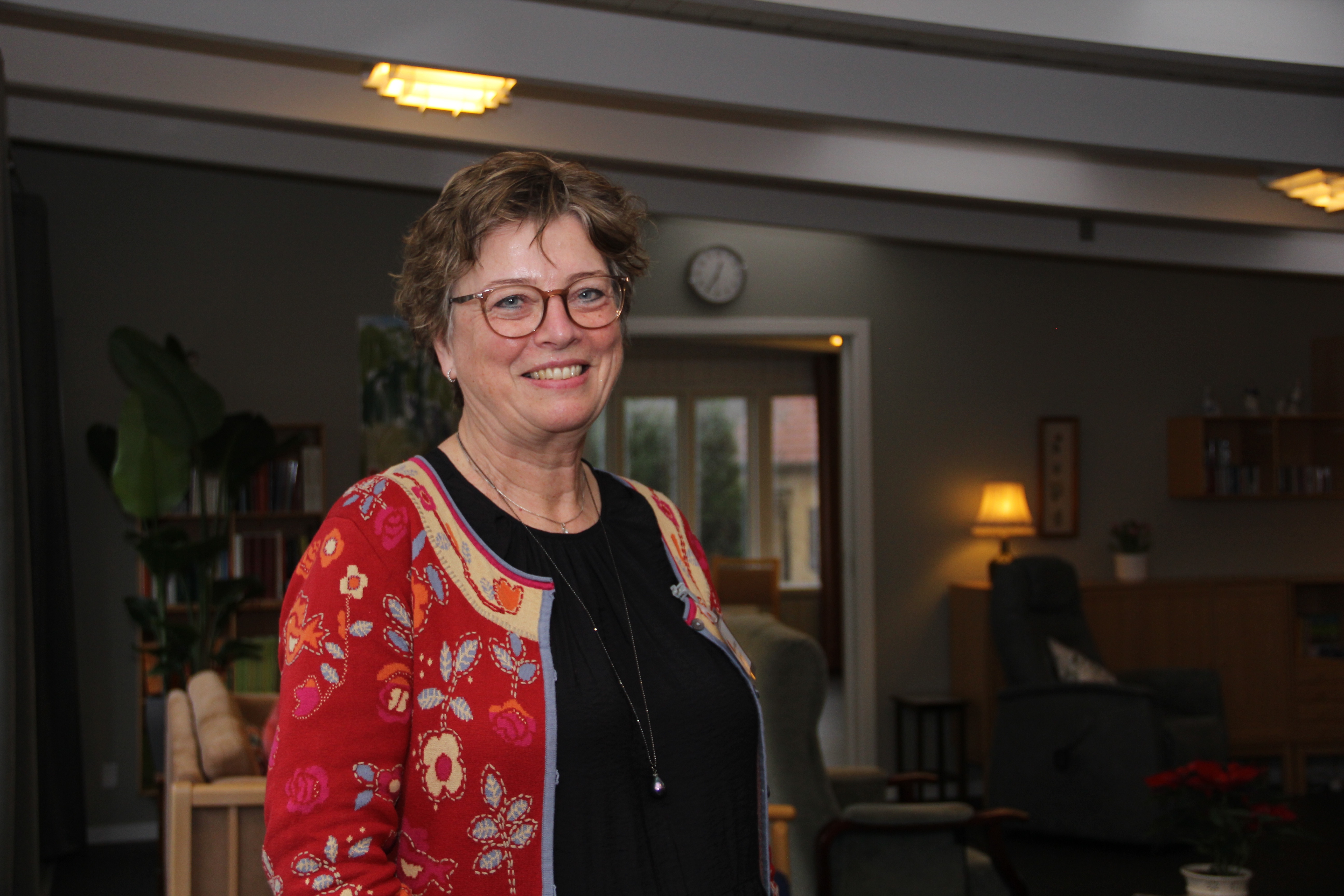 Derfor er der tænkt grundigt over farvevalg, materialer og møbler i de nyrenoverede lokaler for at få fællesområderne til at virke så hjemlige som muligt, fortæller hun.