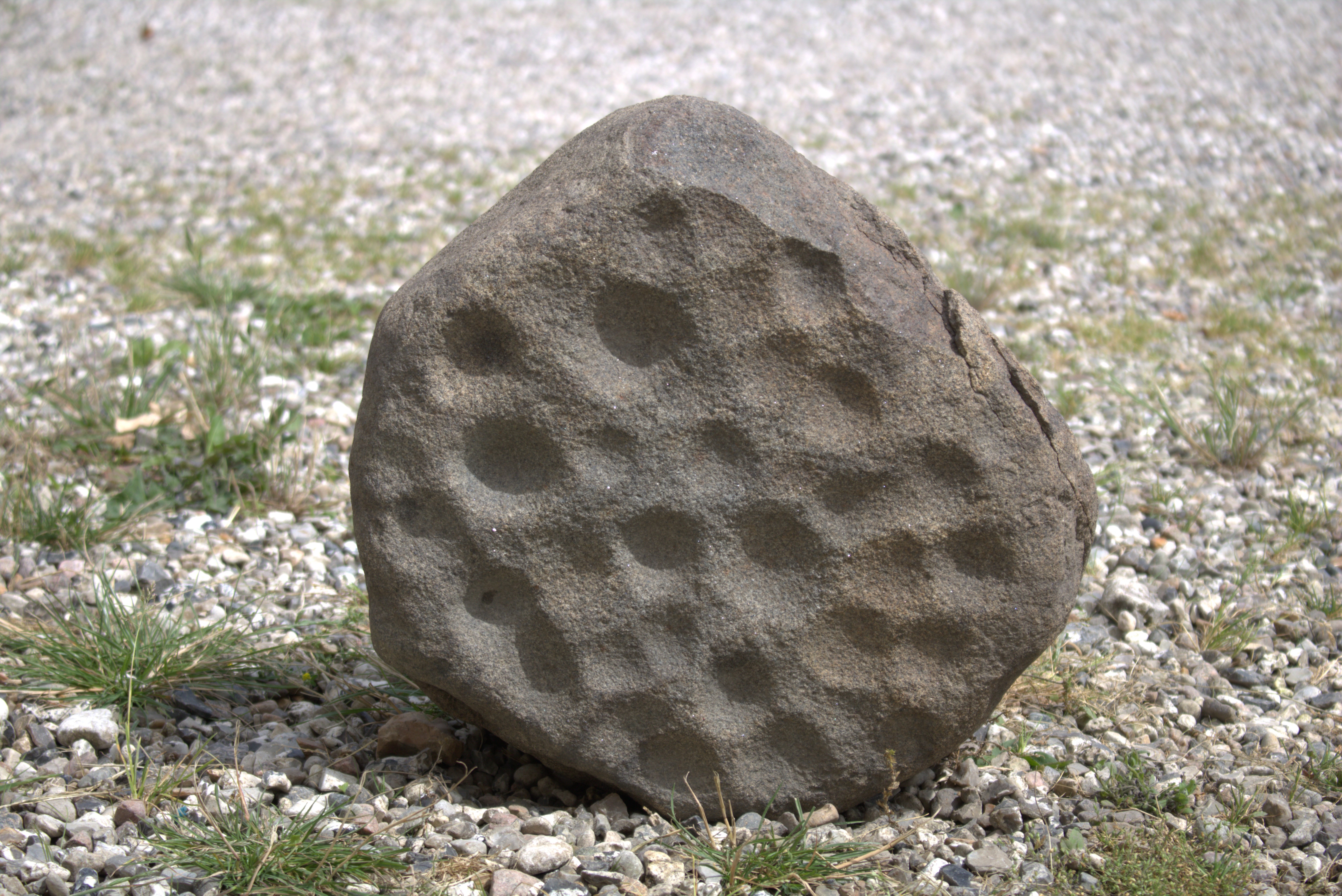 - Sten med skålgrubetegn genanvendt som fundamentssten i et hus i senmiddelalderens Dragør (1800-500 f.v.t. og igen 1500-1600 e.v.t.).