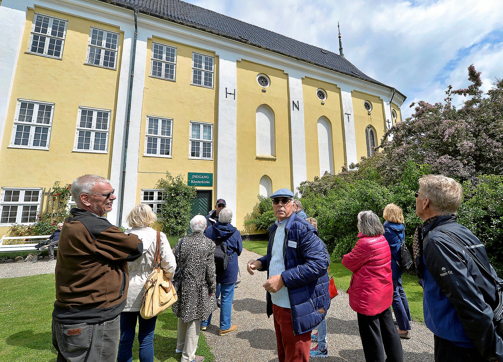 Det blev til en godt to timer lang vandring i slotsparken, klosterkirken og malerisamlingen. Læserne blev blandt andet ført gennem fortællinger om det gamle rokokoslots historie, om klosterkirken uden tårn, som aldrig har været sognekirke og om den imponerende malerisamling, der i dag består af godt 1.000 malerier og er et nationalt klenodie.