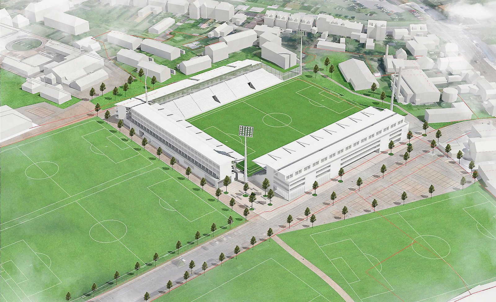 Samtidig skal der være plads til hotel, sportskollegium, flere omklædningsrum og private virksomheder med tilknytning til sporten.