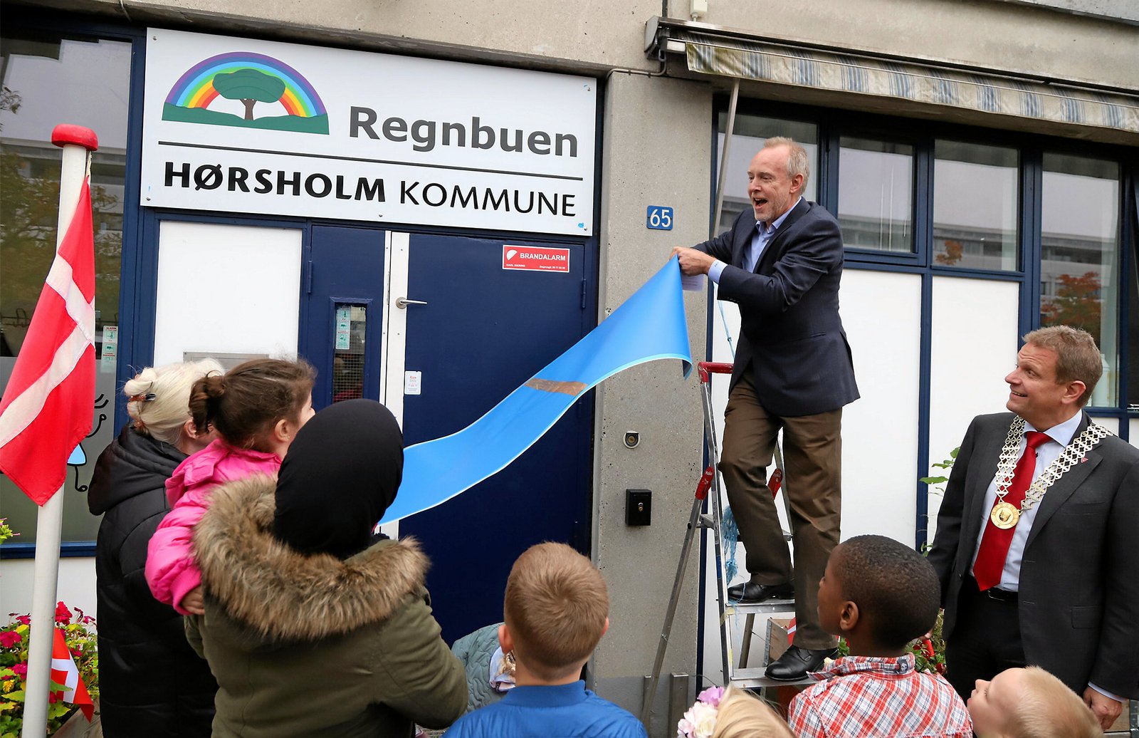 Mens borgmester Morten Slotved (K) gik rundt og gav highfives til børnene, kom Børne- og Skoleudvalgsformand Otto B. Christiansen (K) på arbejde, da han havde fået æren af at afsløre institutionens nye navn »Regnbuen«. Sanne Brask Terkelsen lagde ikke skjul på, at institutionen har været hårdt prøvet det første år.