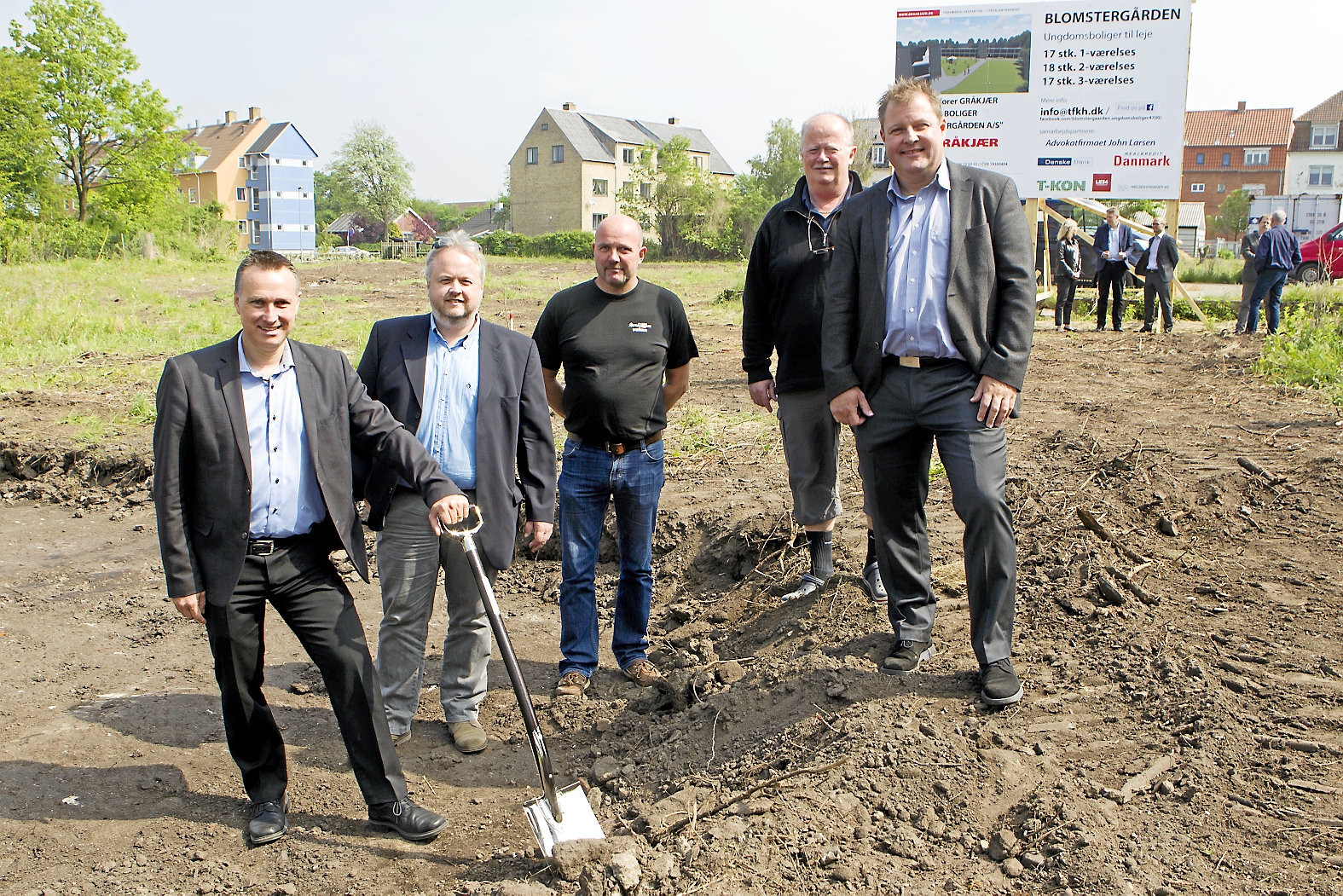 Det var en glad borgmester Carsten Rasmussen, der fredag middag tog første spadestik til ungdomsbolig-projektet Blomstergården. Det omfatter i alt 130 ungdomsboliger, der skal opføres i etaper efterhånden som der er behov.