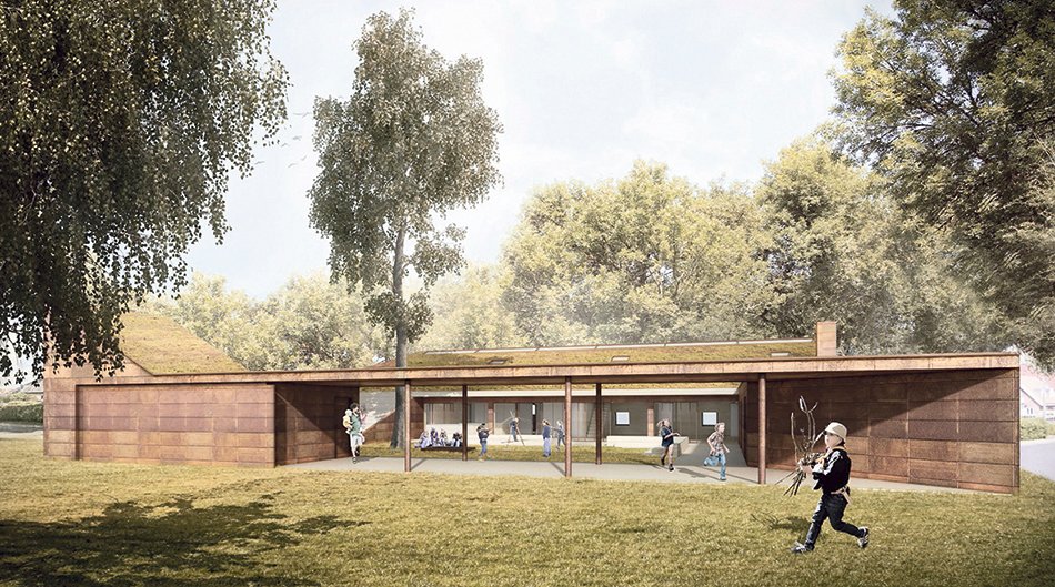 Forslag til nyt spejderhus set fra sydøst.Illustration: ONV Arkitekter