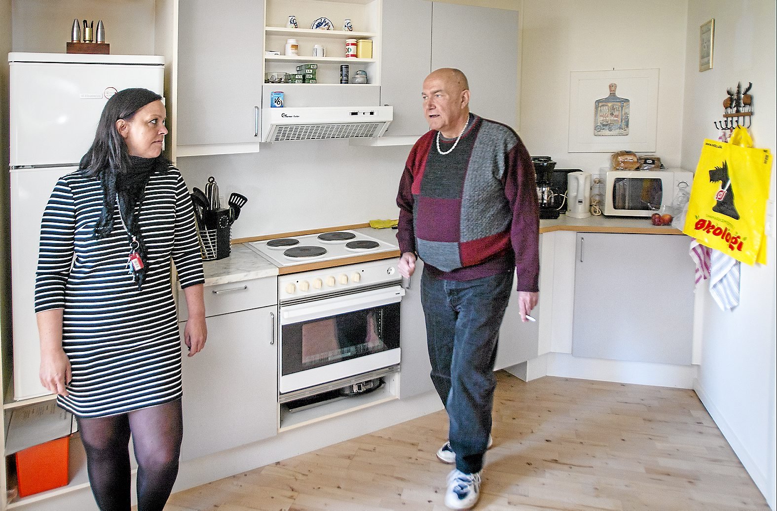Han har en stue med sofaarrangement og køkkenafdeling, et stort soveværelse samt badeværelse og det er han godt tilfreds med. »Jeg er tidligere kreaturslagter og har også været kok på Cypern, så jeg kan godt finde på selv at lave mad. Så går jeg ned og handler for mig selv i Taastrup og det nyder jeg,« siger han. Jørn fortæller, at han bor i botilbuddet, fordi han har haft problemer med alkohol. »Jeg har ikke drukket i et år nu, men jeg er nødt til at have støtte for at kunne klare den,« forklarer han.