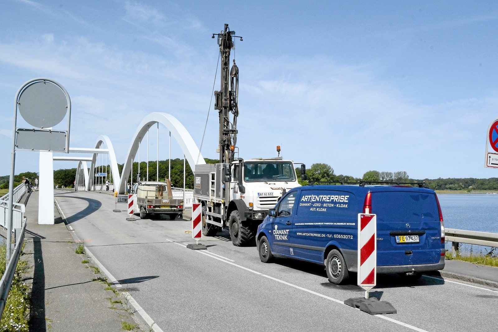 Broconsult er Holbæk Kommunes rådgiver på arbejdet med Munkholmbroen. Som en del af undersøgelserne blev der i en uges tid i juli udført geotekniske undersøgelser. Det er blandt andet resultaterne herfra, der har vist, at det langt fra står så slemt til med lejerne som frygtet. Når de engang om flere år sksl udskiftes, er det en større operation, hvor broen skal løftes med donkrafte, så man kan komme til at sætte nye lejer ind.