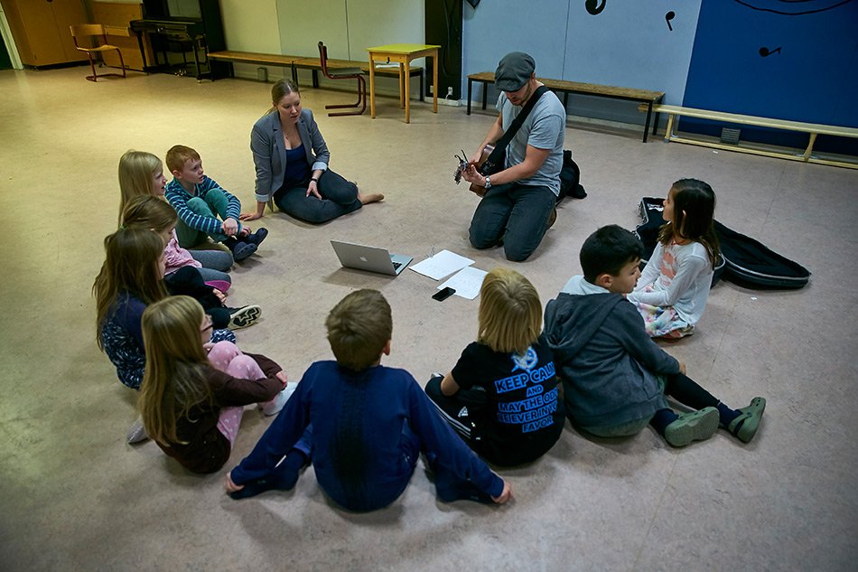 Billeder fra matematikmusik på Skovvejens Skole Øst