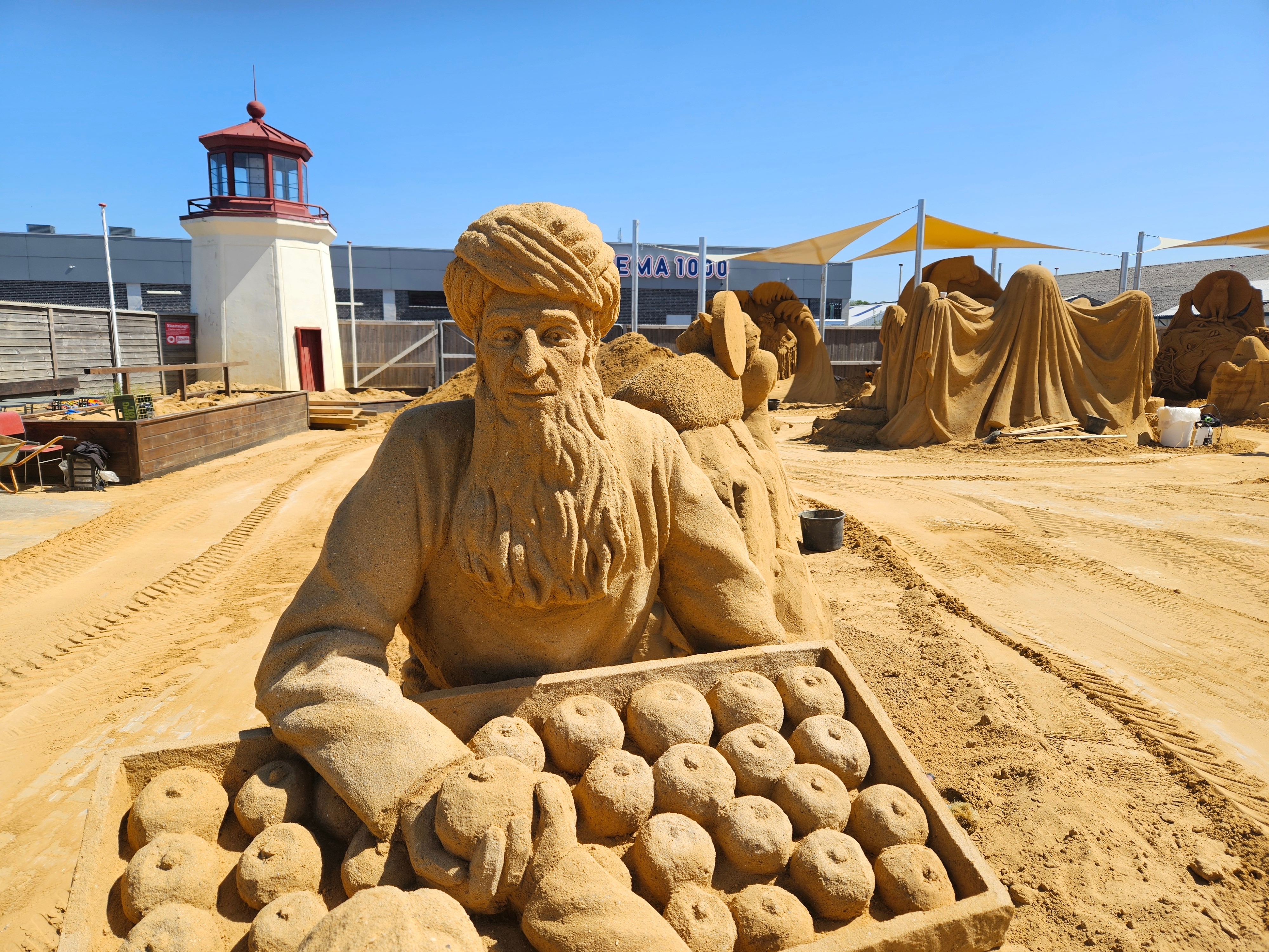 - Vi kommer til at sætte en del sejl op over en del af sandskulpturerne. Vi oplever, at mange folk ringer og skriver, når der har været regn, fordi de er i tvivl, om vi har åbnet. Og jeg tror, at mange bliver væk af den årsag, siger Christian Warrer