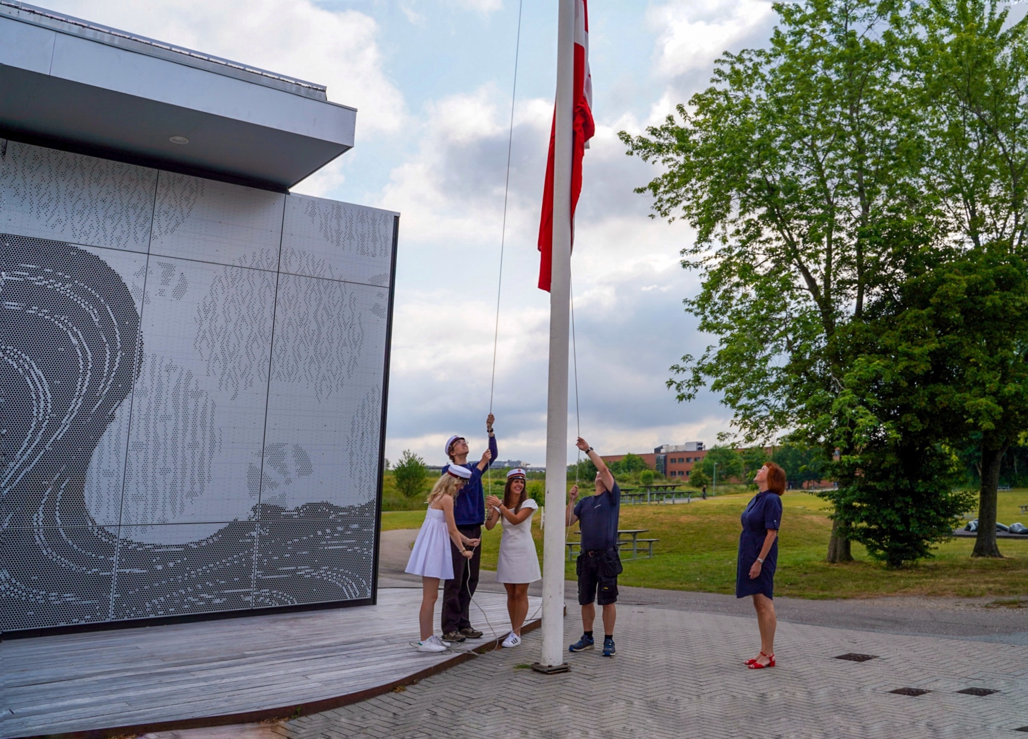 På Borupgaard var der traditionen tro flaghejsning mandag klokken 8.30, hvor de første studenter hejste flaget sammen med konstitueret rektor Karin Bøhrk.
