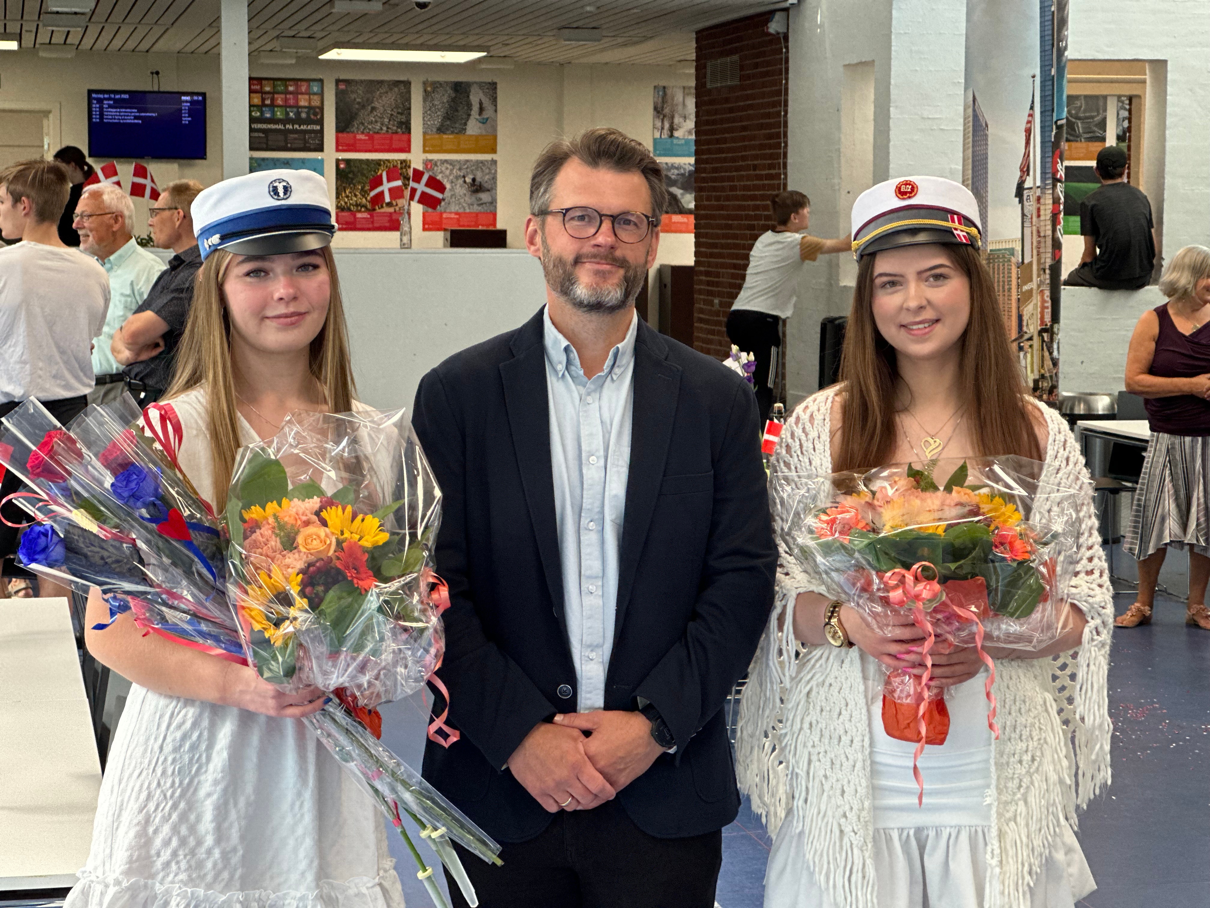 Caroline Blomberg fik sin blå HHX-hue på og skal nu have et sabbatår, inden hun skal i militæret, mens Amalie Larsen efter sommerferien skal i lære hos Toyotas administration.