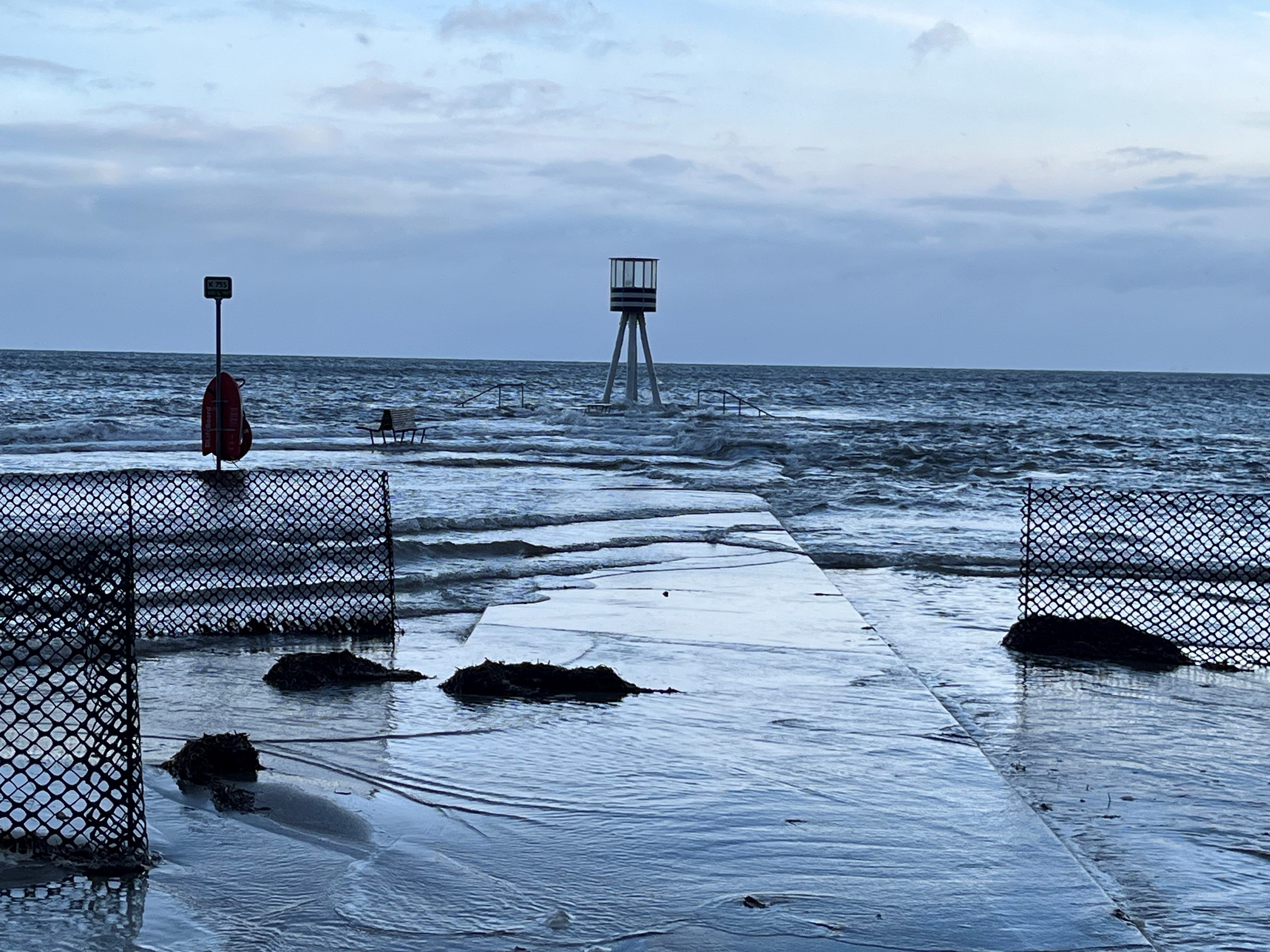 - Vandet er lige nu lige til kajkanten, men så regner jeg heller ikke med, at det stiger mere. Men længere inde mod København, i jollehavnen, Bombegrunden og stranden ved Bellevue er der nok oversvømmet.