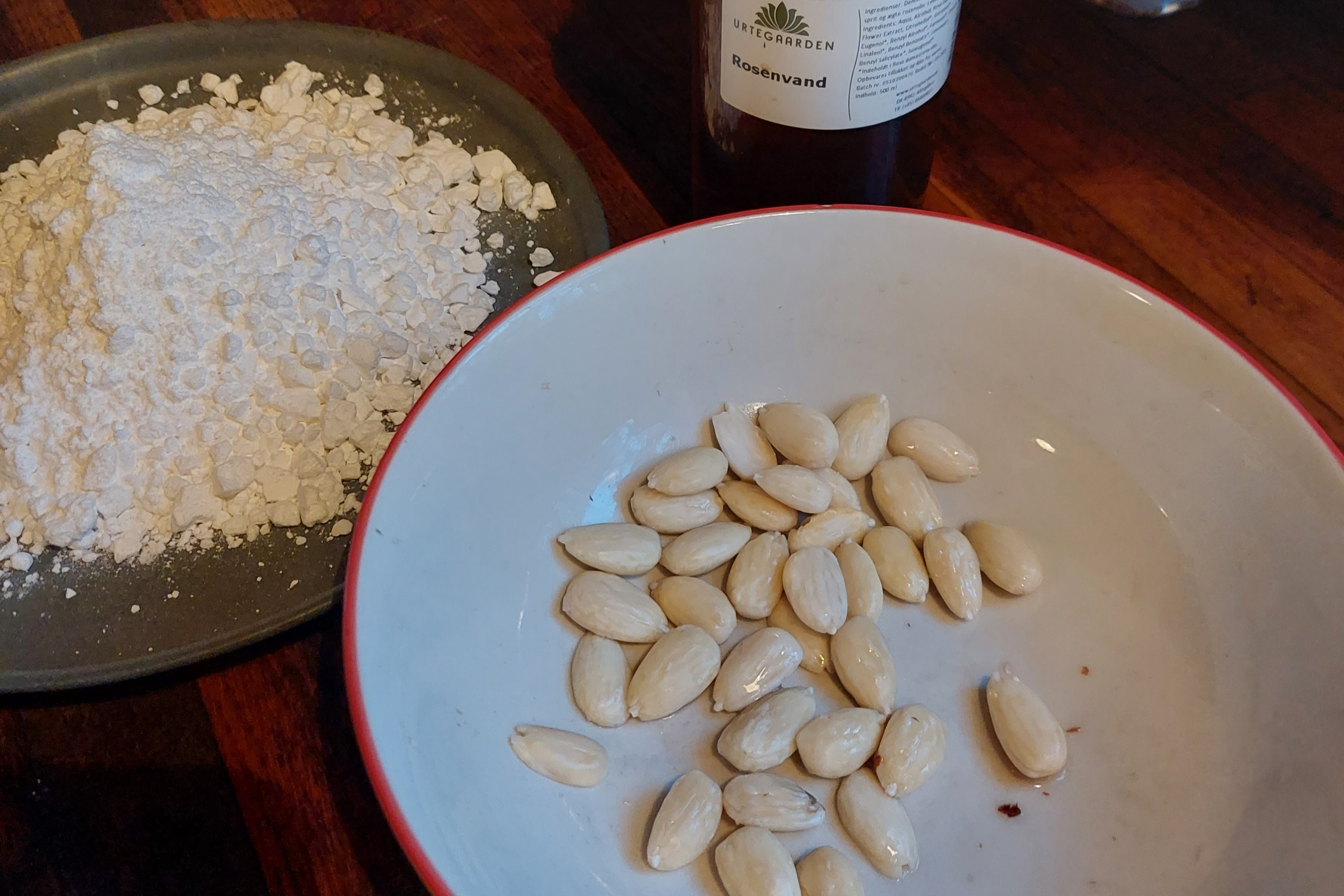 Bliver massen for tør kan rosenvand tilsættes til massen får den rette konsistens.