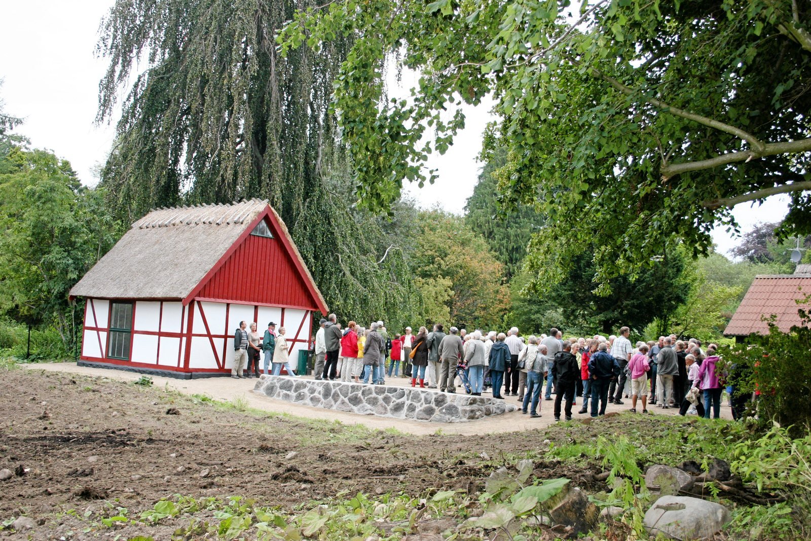 Huset lå der i forvejen, god skjult og helt forfaldent, men nu er det også sat i tip top stand, det var bare ikke færdigindrettet, da 150 store og små tirsdag aften deltog i Haslev Turistforenings rundvisning med godsforvalter Jens Risom og havearkitekt Greg Kobett i spidsen.