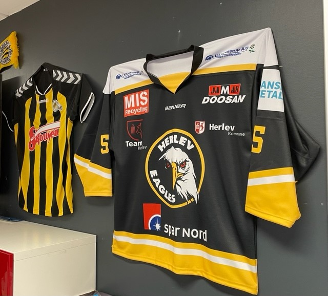 Skousen Brønshøj er en lokal butik som mange fodbold- og ishockeytilhængere kender til for det er vigtigt for Jesper Barfod at være lokal. På bagvæggen i butikken bag kassen hænger da også trøjer fra Husum Boldklub, Brønshøj Boldklub og ishockeyklubben Herlev Eagles.