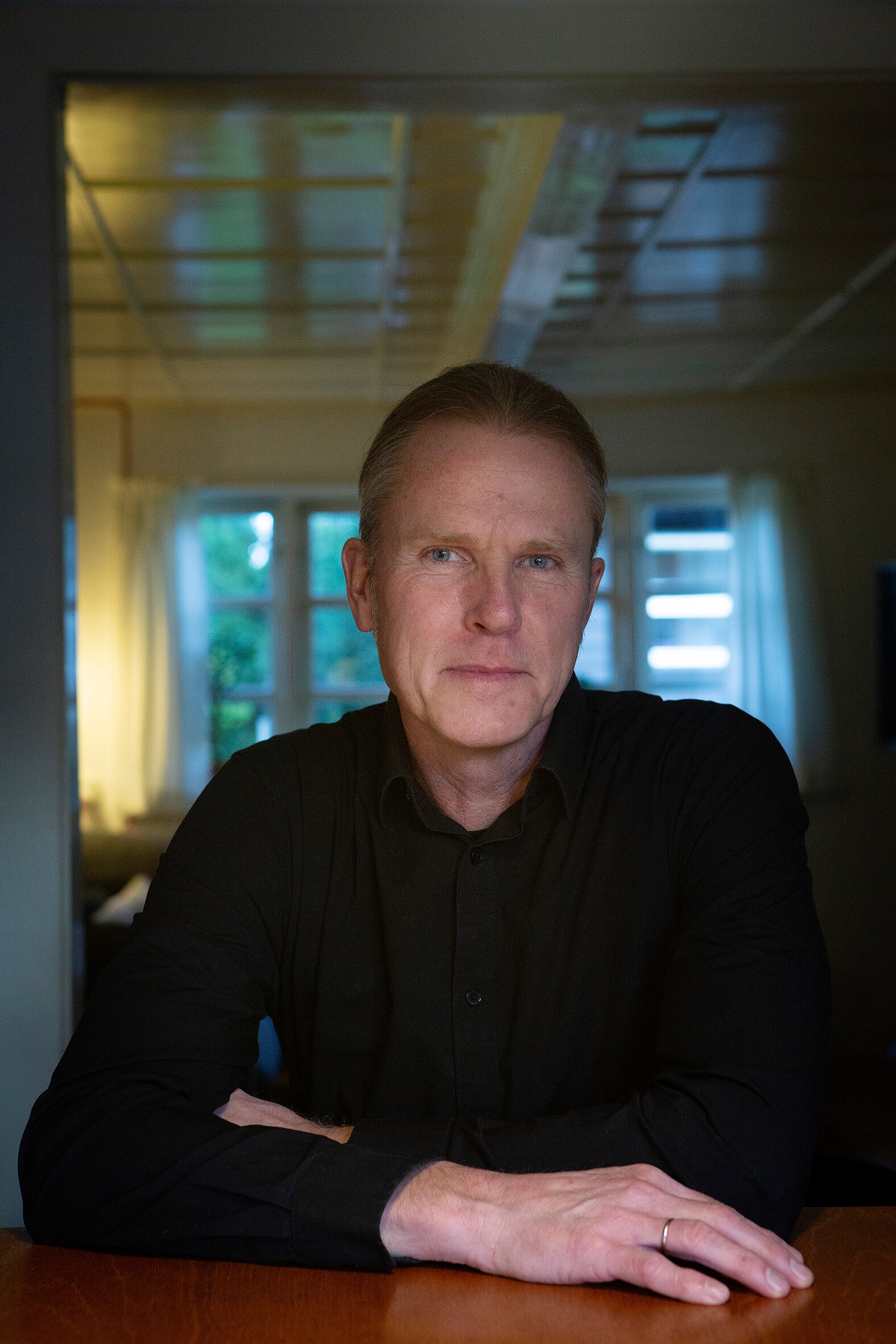 Henning Urban Dam sidder her ved spisebordet i det 200 år gamle kridtstenshus med bindingsværk og stråtag. (Foto: Thomas Olsen)