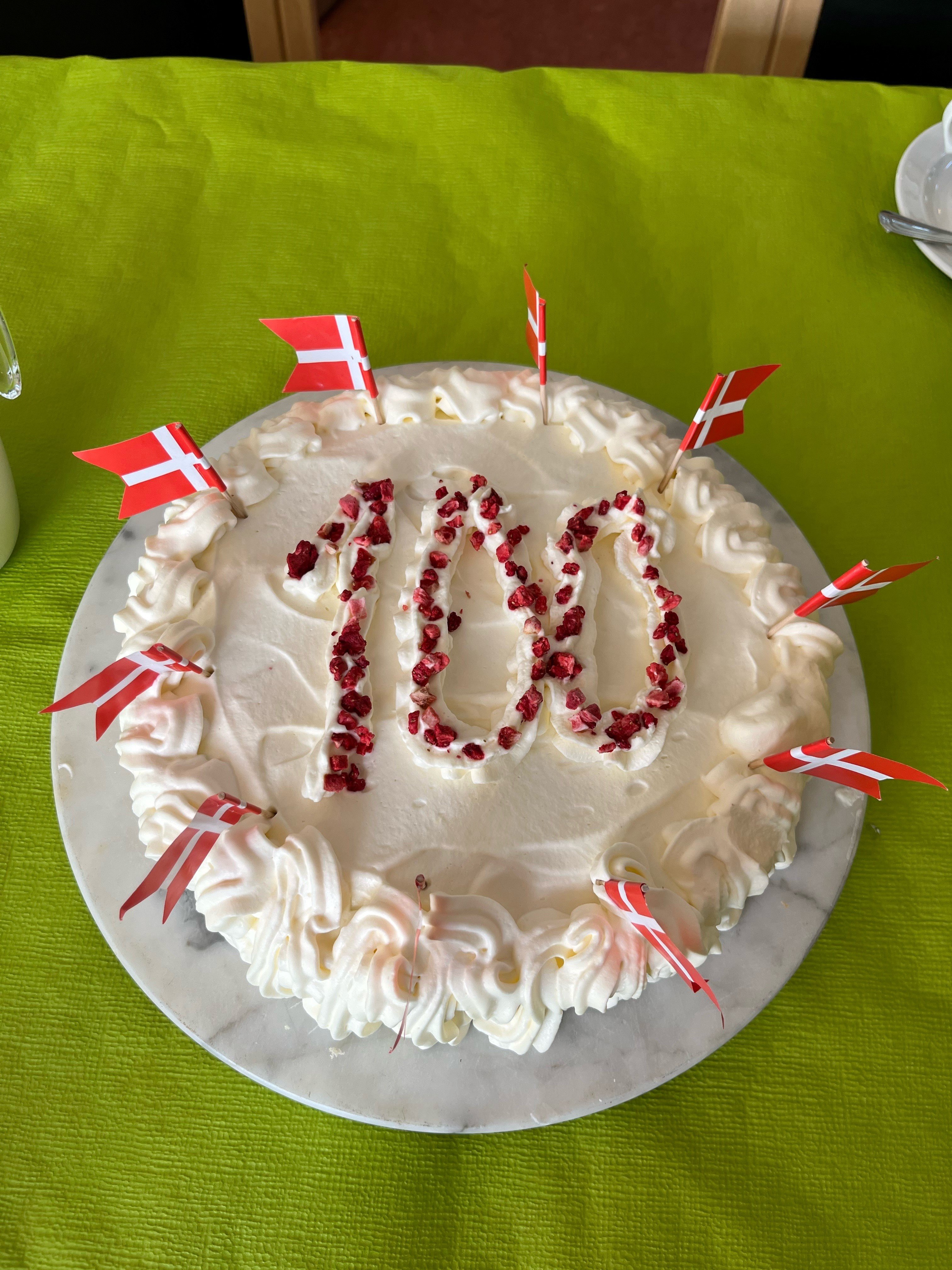Borup: For nylig blev flaget hejst Plejehjemmet Jernhøj i Borup, for at fejre Thorvald Mortensens fødselsdag - og denne gang vard et en særlig rund mærkedag, der blev fejret. Hvis der ellers var plads kunne fødselaren nemlig putte hele 100 lys i lagkagen.