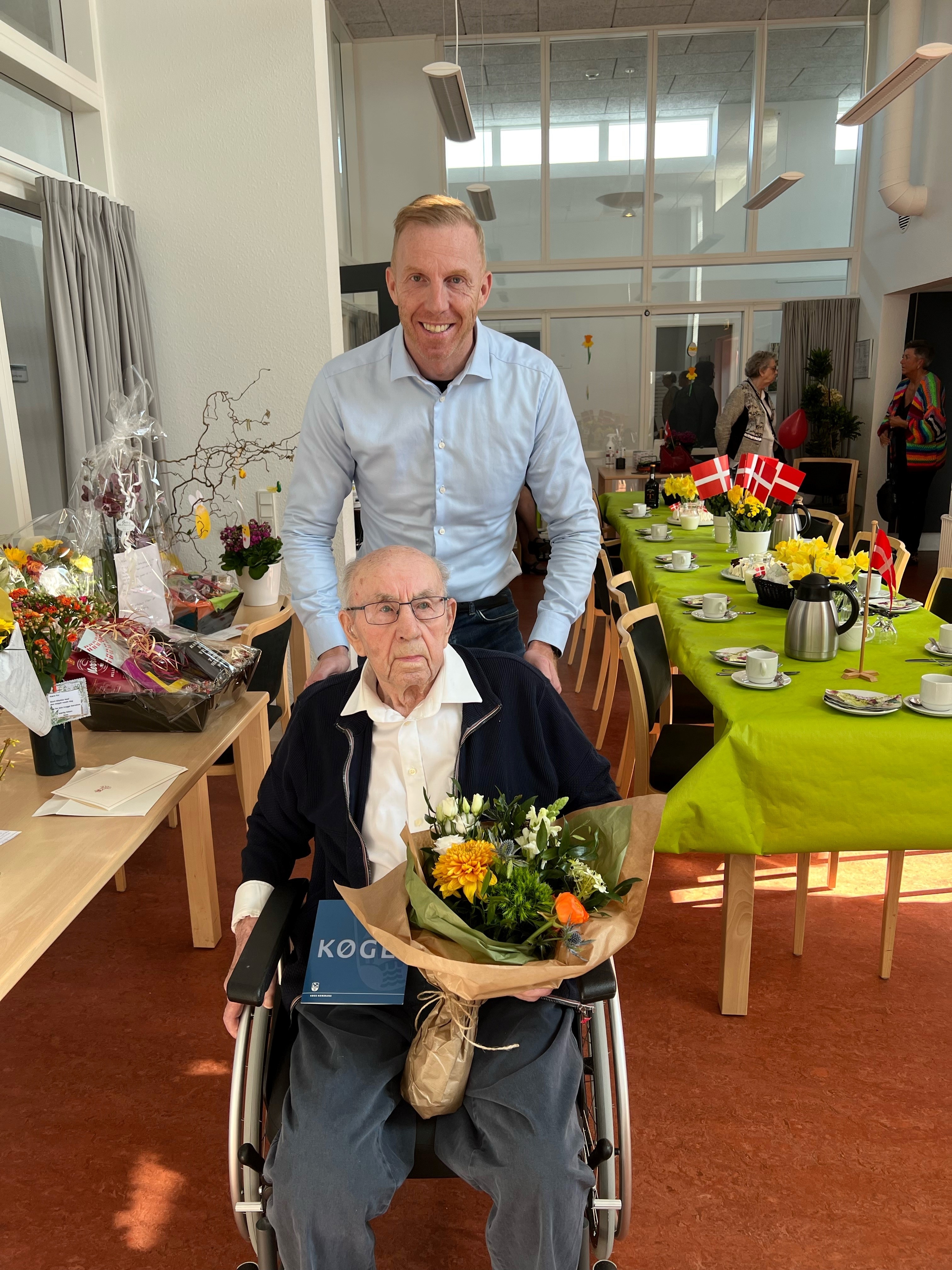 I anledning af 100-års fødselsdagen havde viceborgmester Ken Kristensen (V) fra byrådet i Køge fornøjelsen af at kunne overrække en smuk buket blomster samt et fødselsdagskort fra kommunen.
