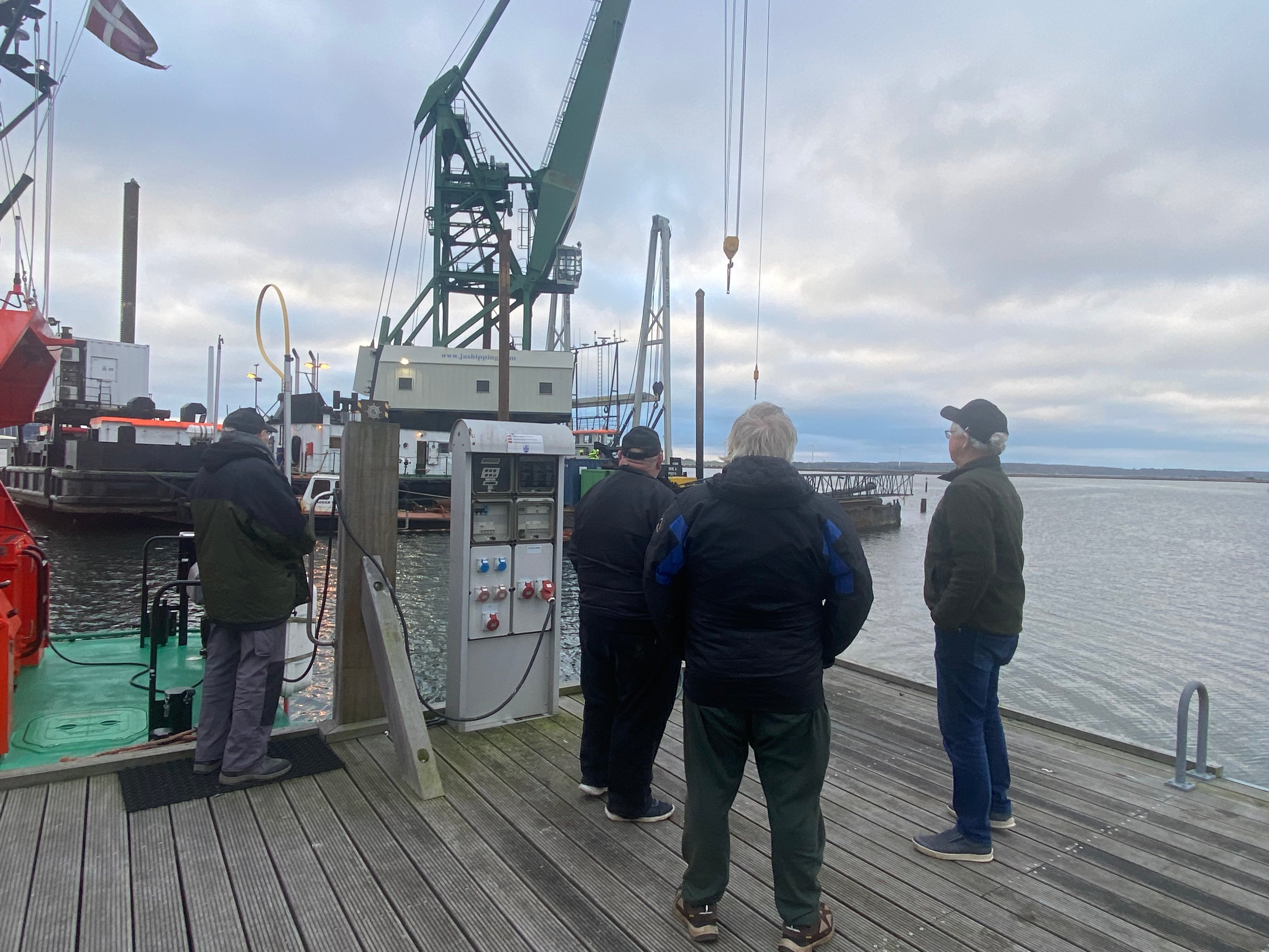 - Nej, vi skal da følge med. Det er trods alt ikke hver dag, at en kran vælter i vandet, som en af gæsterne på havnen, Svend Hansen, udtrykte det.